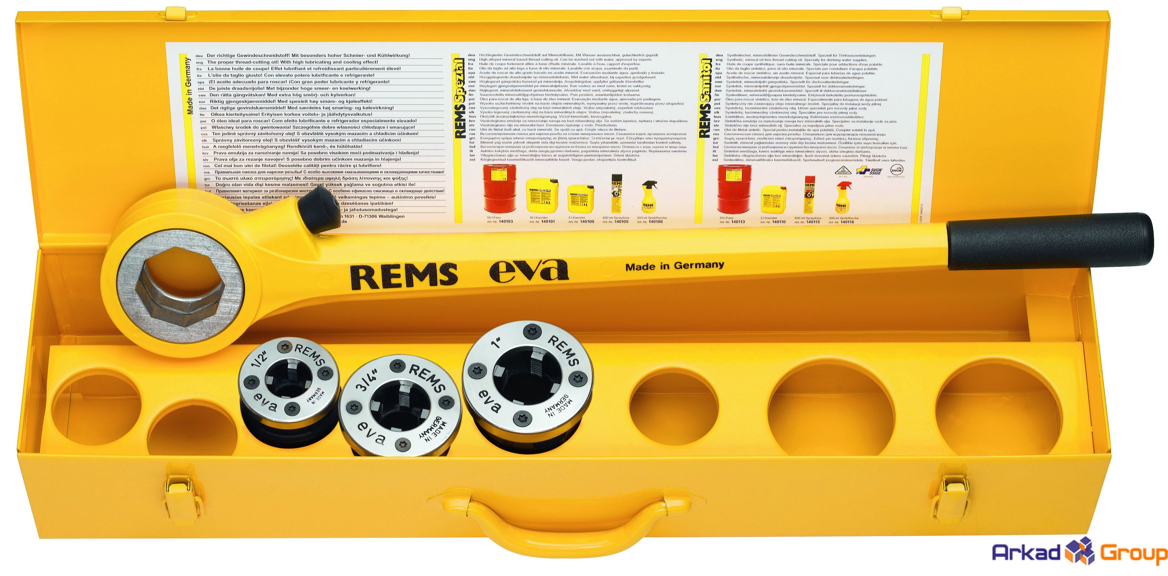Ручной резьбонарезной клупп Rems EVA R 1/2" - 3/4" - 1" в стальном ящике