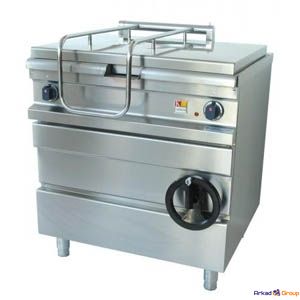Жарочная чаша с габаритными размерами (мм): 710 (ширина), 430 (глубина), 235 (высота) выполнена из серого чугуна. Также чаша имеет специальное покрытие NonStick, которое предотвращает прилипание пищи во время приготовления. Температура жарочной поверхности регулируется при помощи термостата от 100 до 300 °C. Максимальная вместительность составляет 40 л. Сковорода опрокидываемая установлена на 4 регулируемых по высоте ножках. Прочная конструкция позволяет экономить энергию, а ее способность выполнять множество различных задач снижает затраты труда.